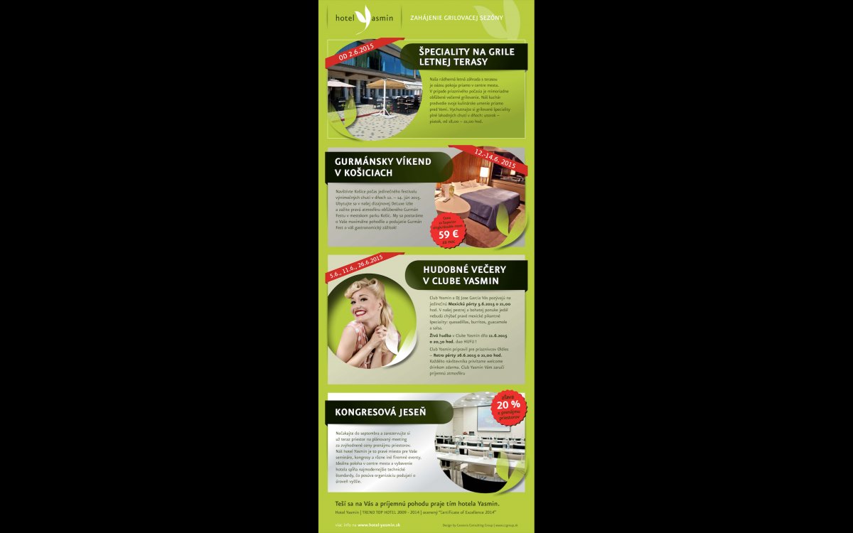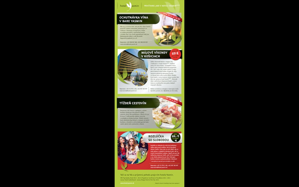 Ukážka newslettra hotela Yasmin**** Košice na mobilnom zariadení