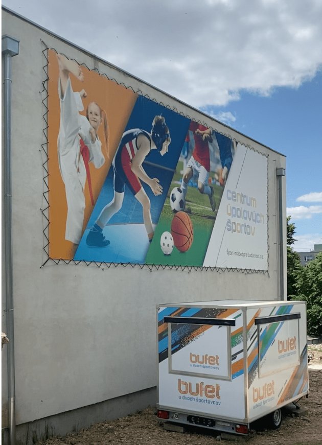 Reklamný banner na stenu. Veľkoformátová tlač. Navrhneme vám grafiku, zabezpečíme výrobu aj montáž.